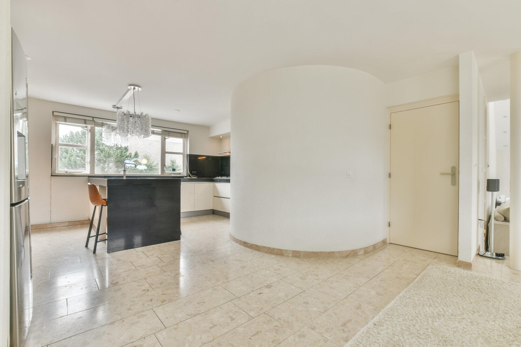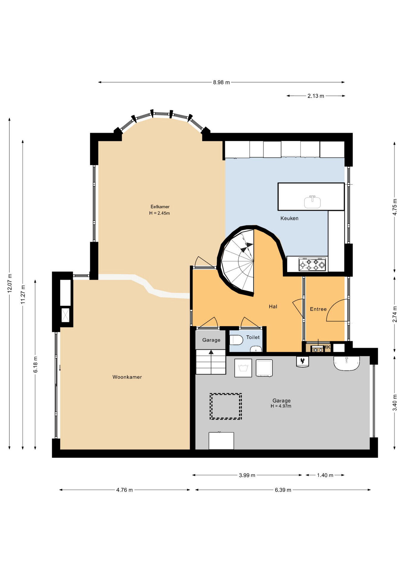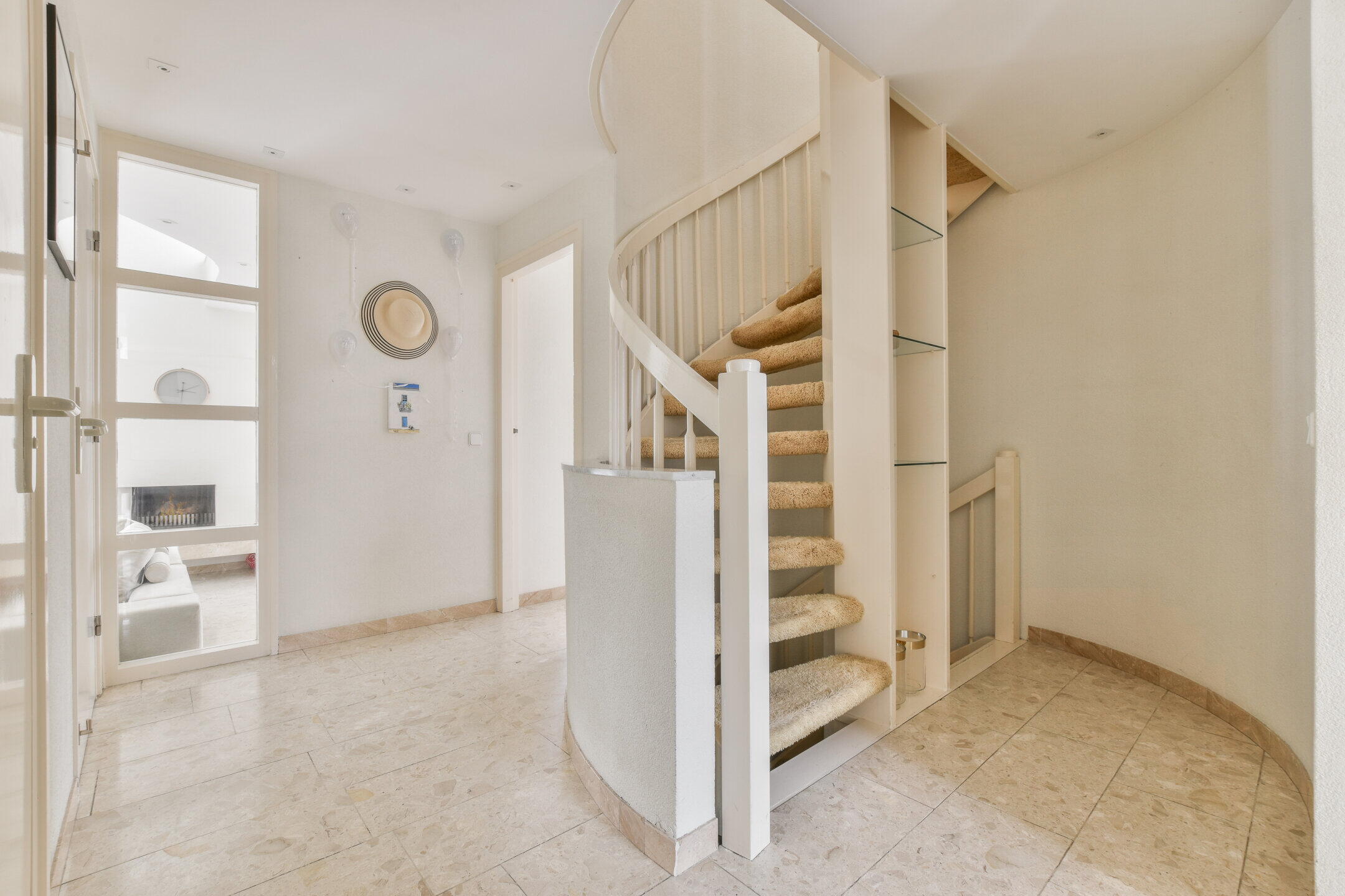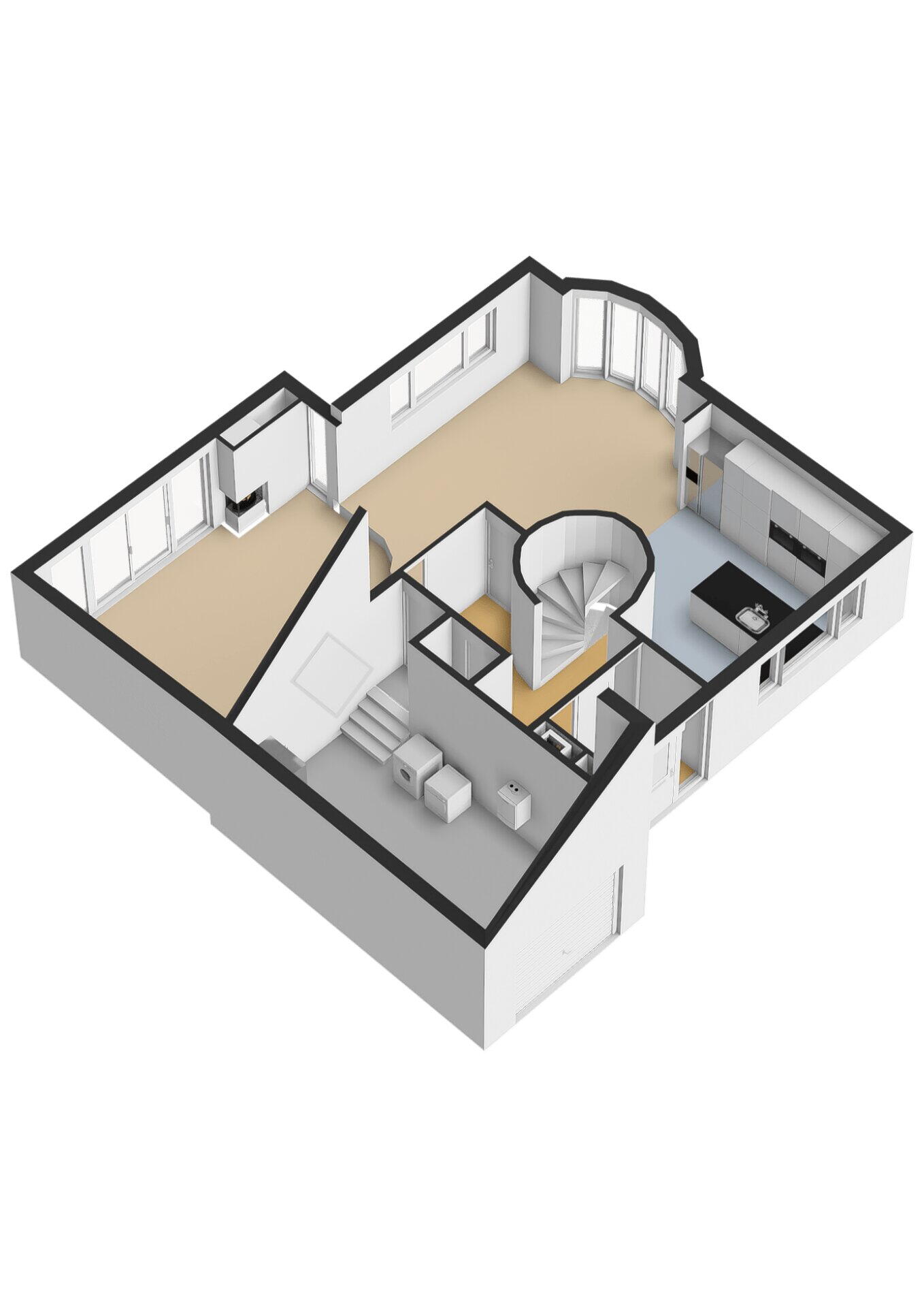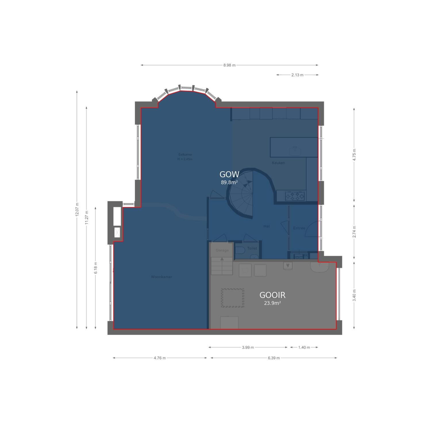 Via het bordes bereikt u de statige entree. De ruime ontvangsthal met het karakteristieke ronde trappenhuis zet direct de toon: elegant en uitnodigend. Vanuit de hal bereikt u de garderobe, het toilet, de garage én de royale leefruimtes. De living, eetkamer en open keuken vormen één ruimtelijk geheel. Dankzij de openslaande deuren vloeien binnen- en buitenleven naadloos in elkaar over, met het water als prachtig decor.