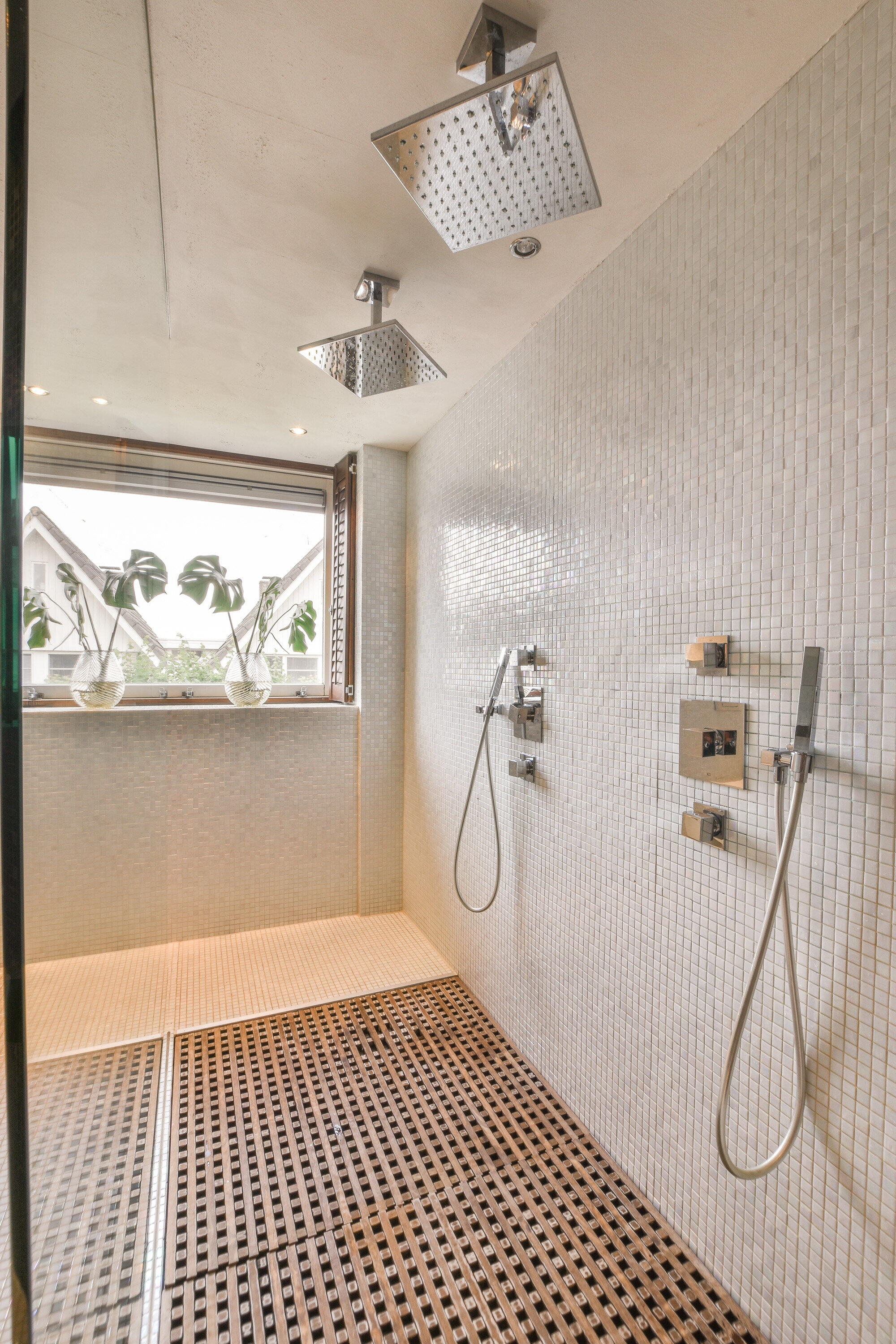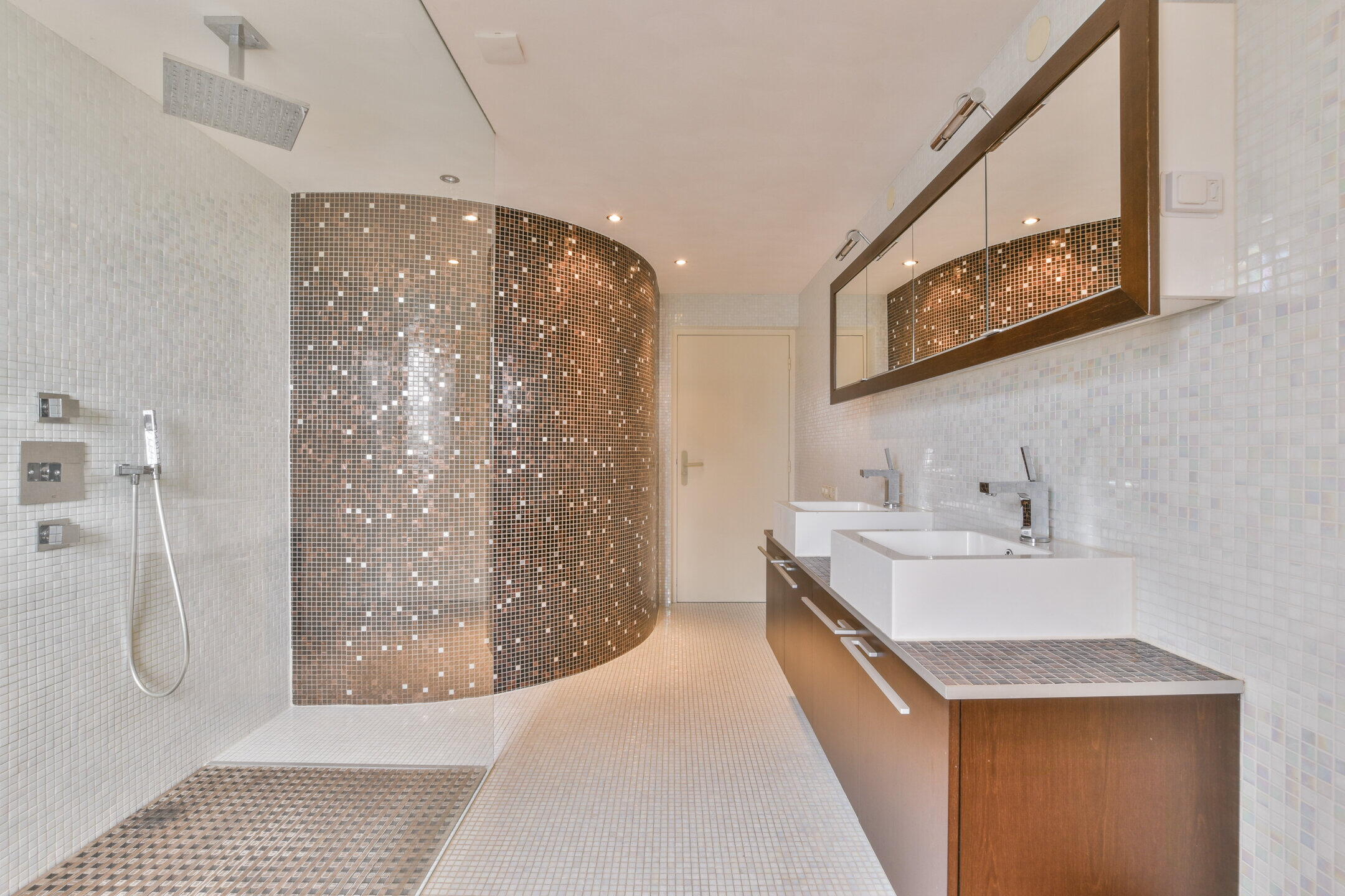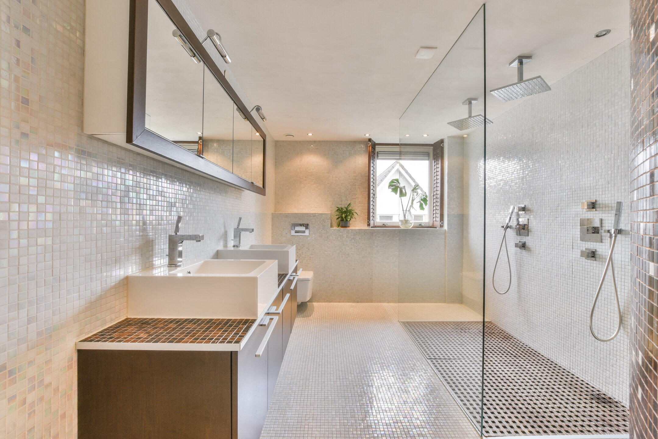 - Toilet, dubbele wastafel, inloopdouche