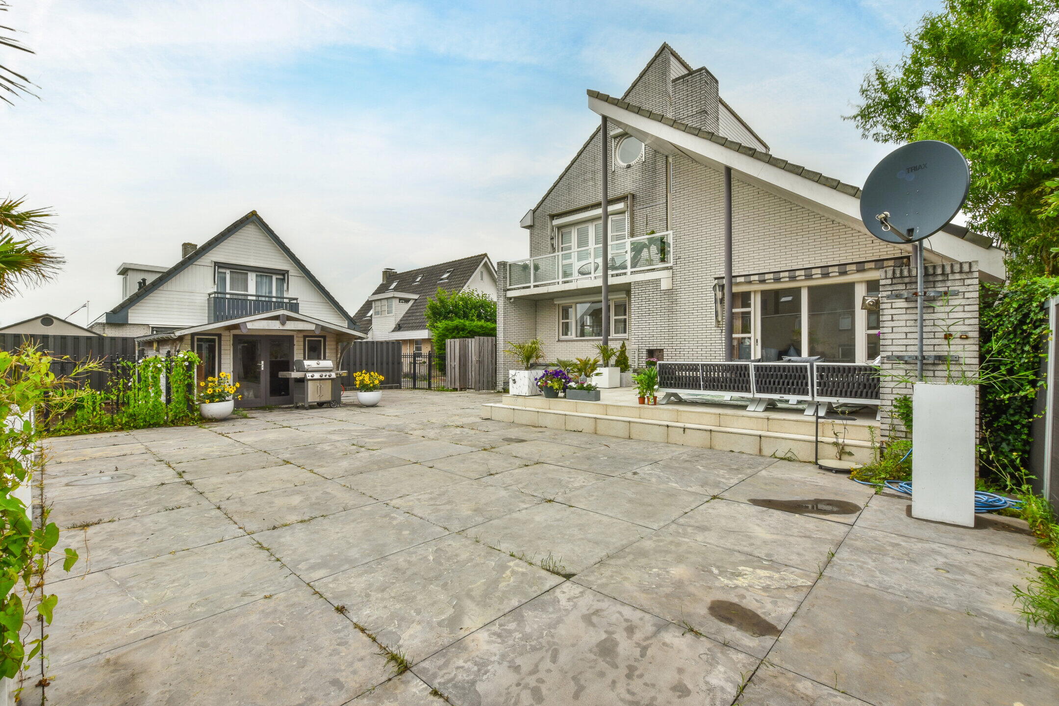 Rondom de villa ligt een prachtig aangelegde tuin met meerdere terrassen aan het water. De ligging op het zuidoosten zorgt voor veel zon, terwijl de eigen steiger direct toegang biedt tot het vaarwater.